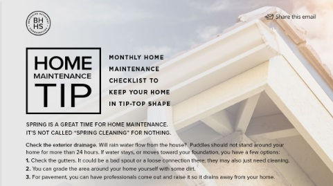 Household Tip from Dawn M. TollMar 31, 20181 min read March Household Tip It's spring! Time to check your gutters and drainage around your house.